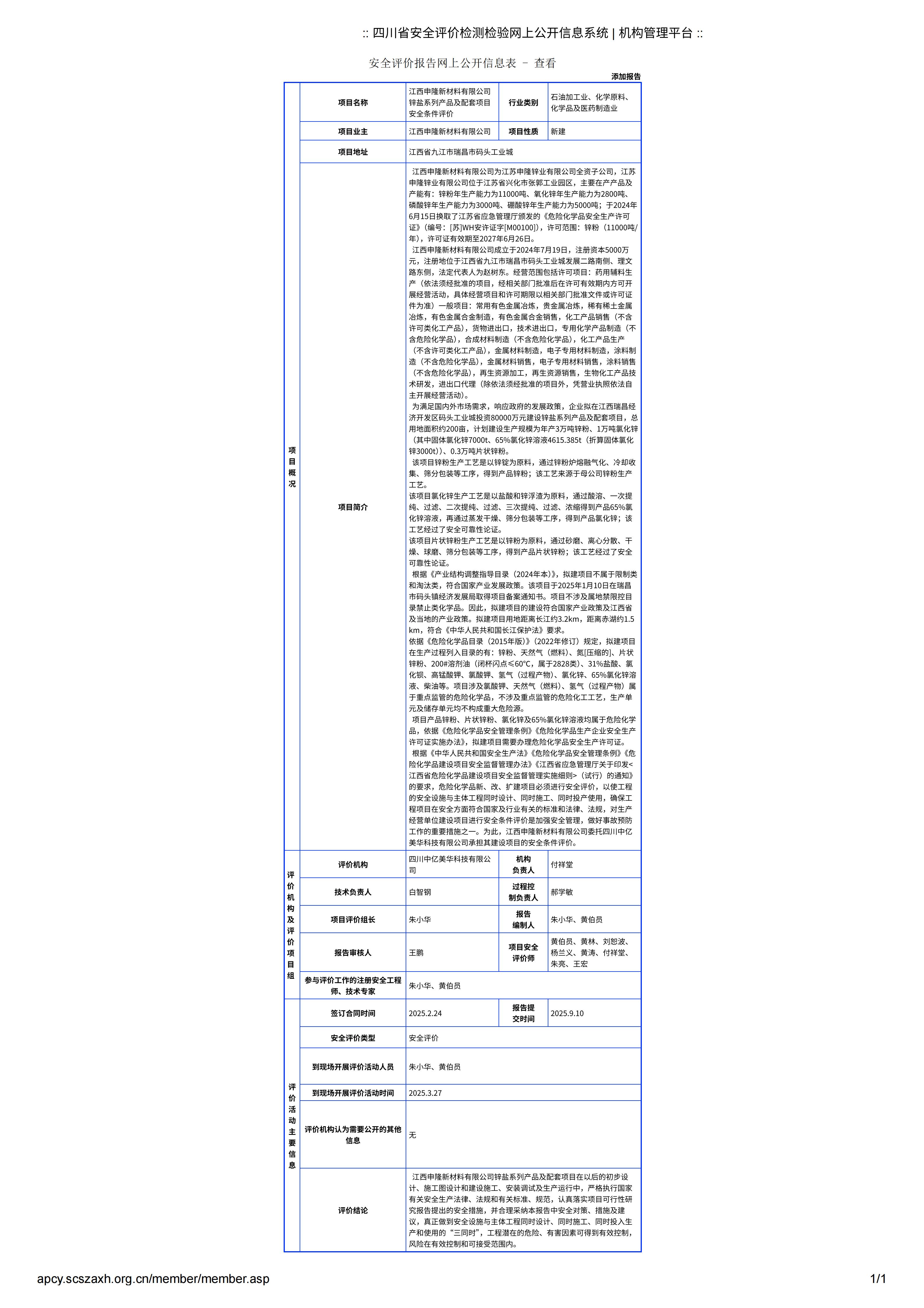江西申隆新材料有限公司锌盐系列产品及配套项目安全条件评价