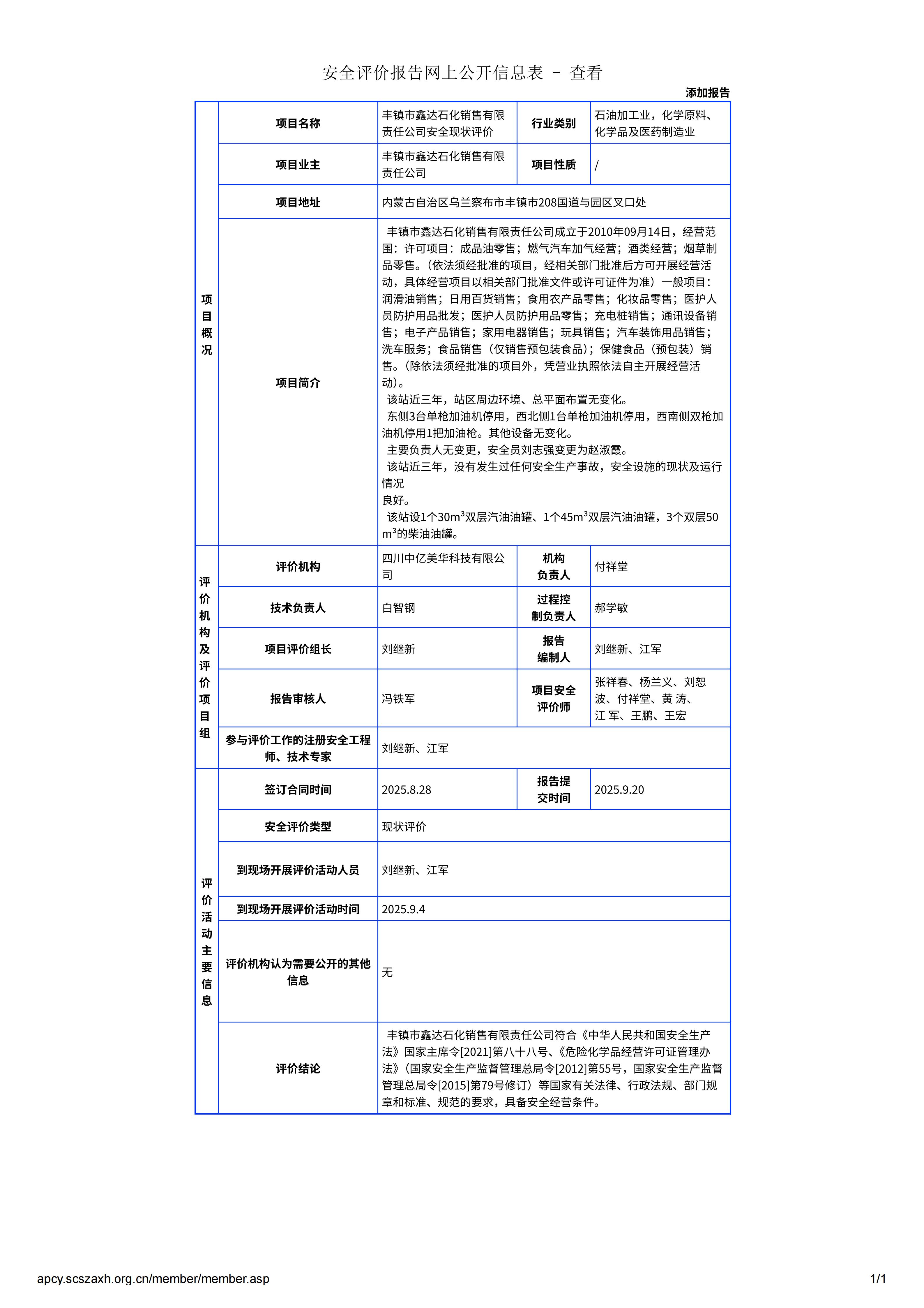 丰镇市鑫达石化销售有限责任公司安全现状评价
