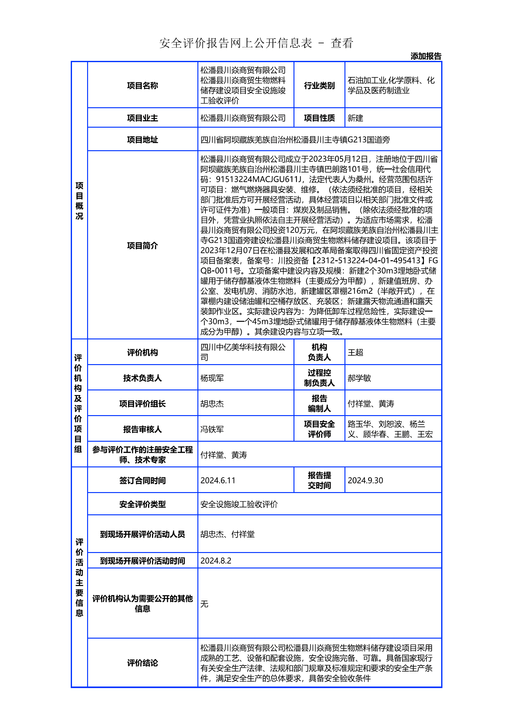 松潘县川焱商贸有限公司松潘县川焱商贸生物燃料储存建设项目安全设施竣工验收评价