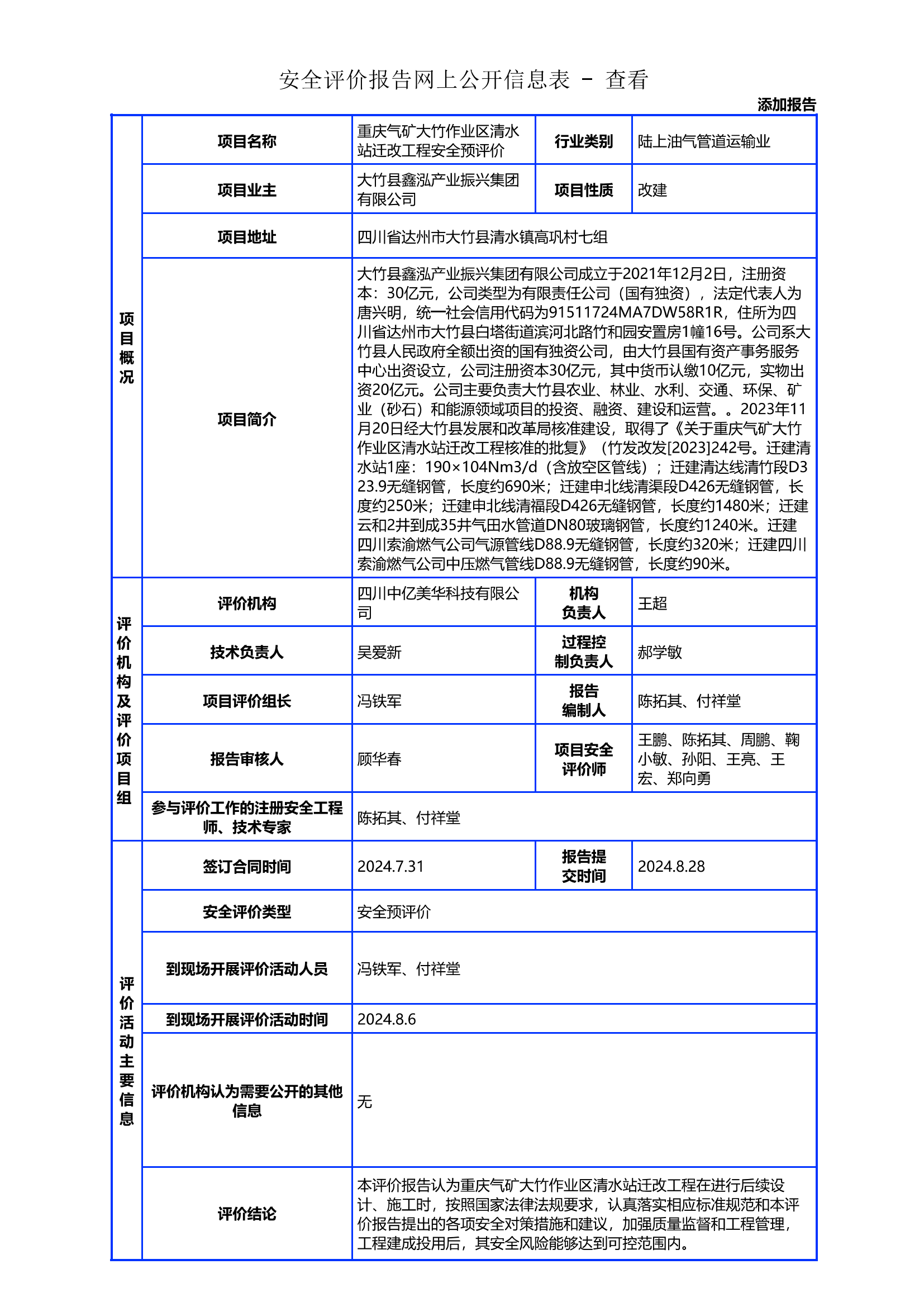 重庆气矿大竹作业区清水站迁改工程安全预评价