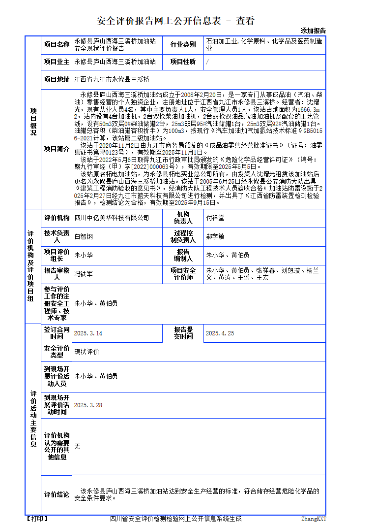 永修县庐山西海三溪桥加油站安全现状评价报告