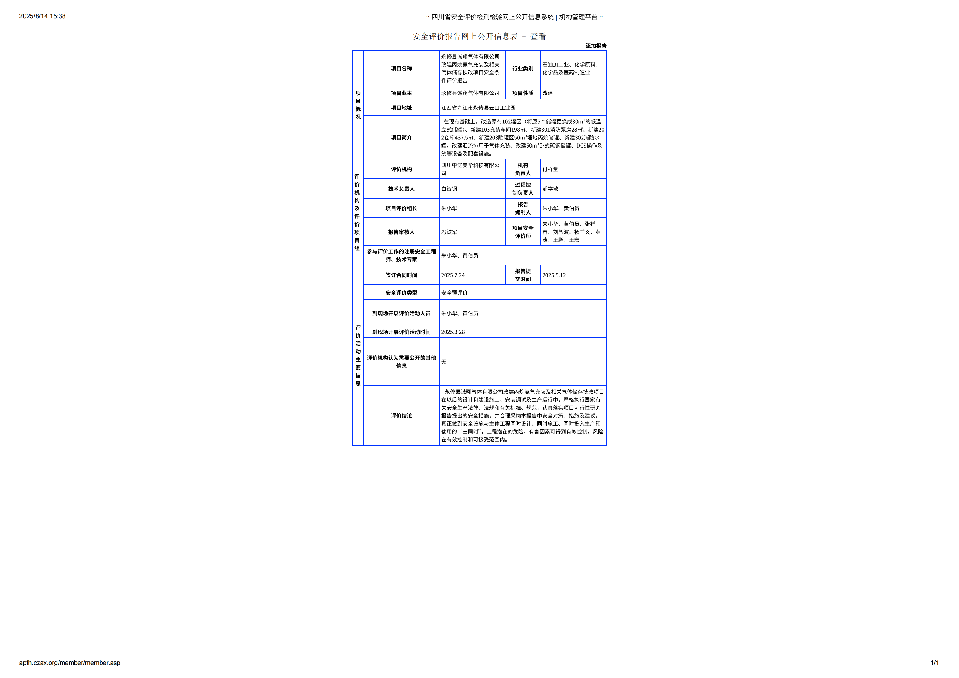 永修县诚翔气体有限公司改建丙烷氦气充装及相关气体储存技改项目安全条件评价报告