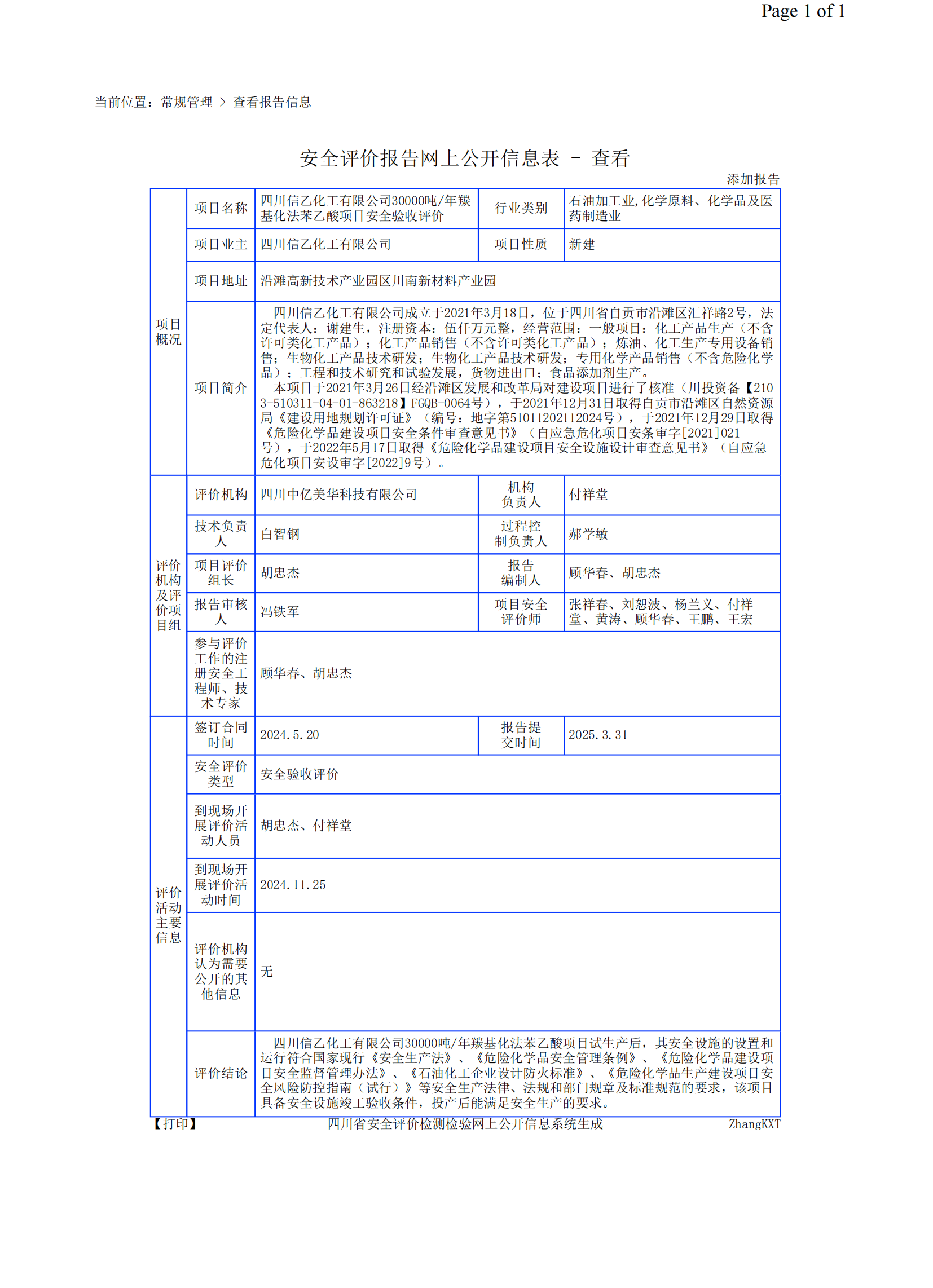 四川信乙化工有限公司30000吨/年羰基化法苯乙酸项目安全验收评价