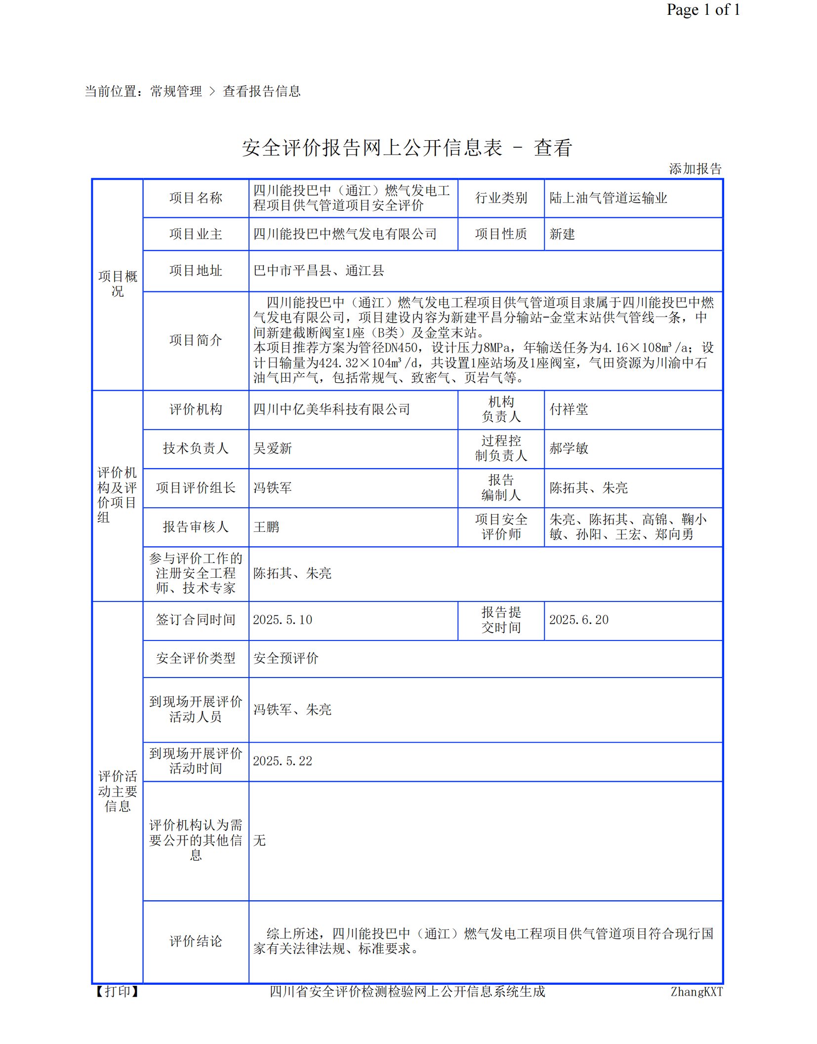 四川能投巴中(通江)燃气发电工程项目供气管道项目安全评价