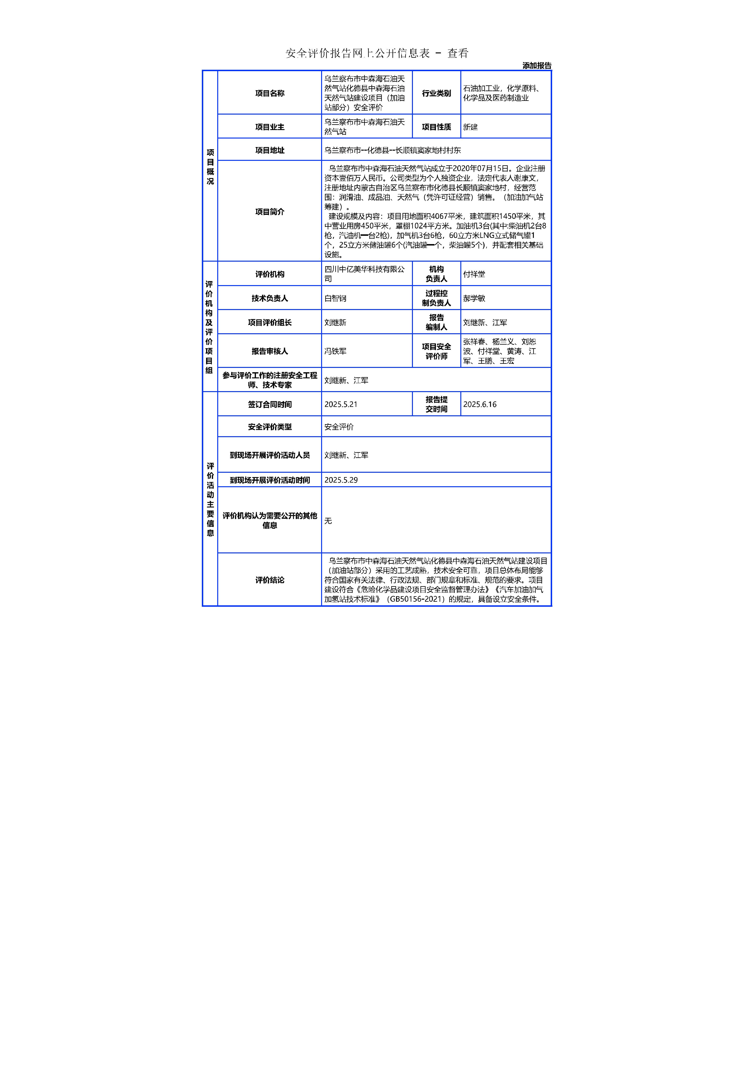 乌兰察布市中森海石油天然气站化德县中森海石油天然气站建设项目(加气站部分)