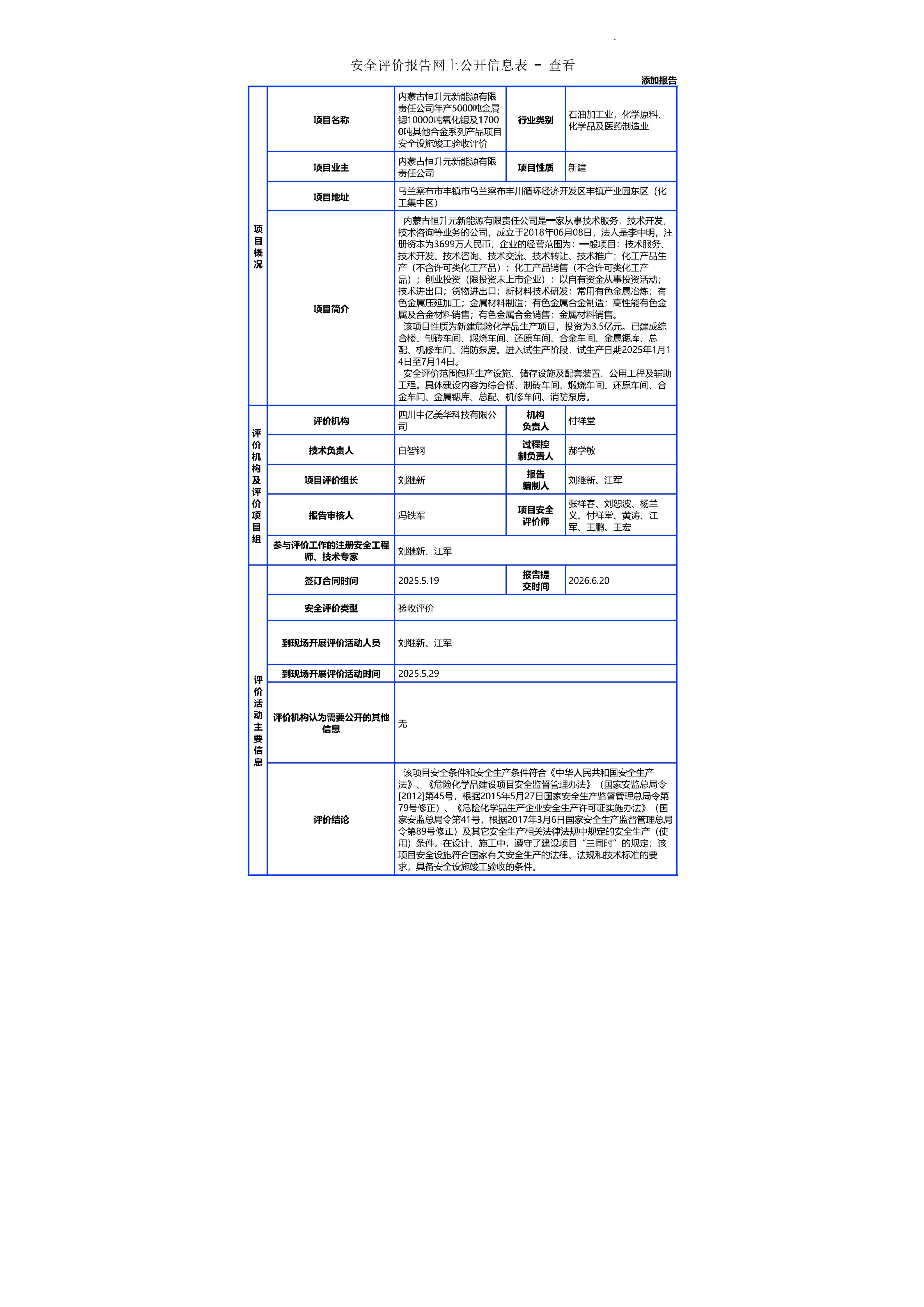 内蒙古恒升元新能源有限责任公司年产5000吨金属锶10000吨氧化锶及17000吨其他合金系列产品项目