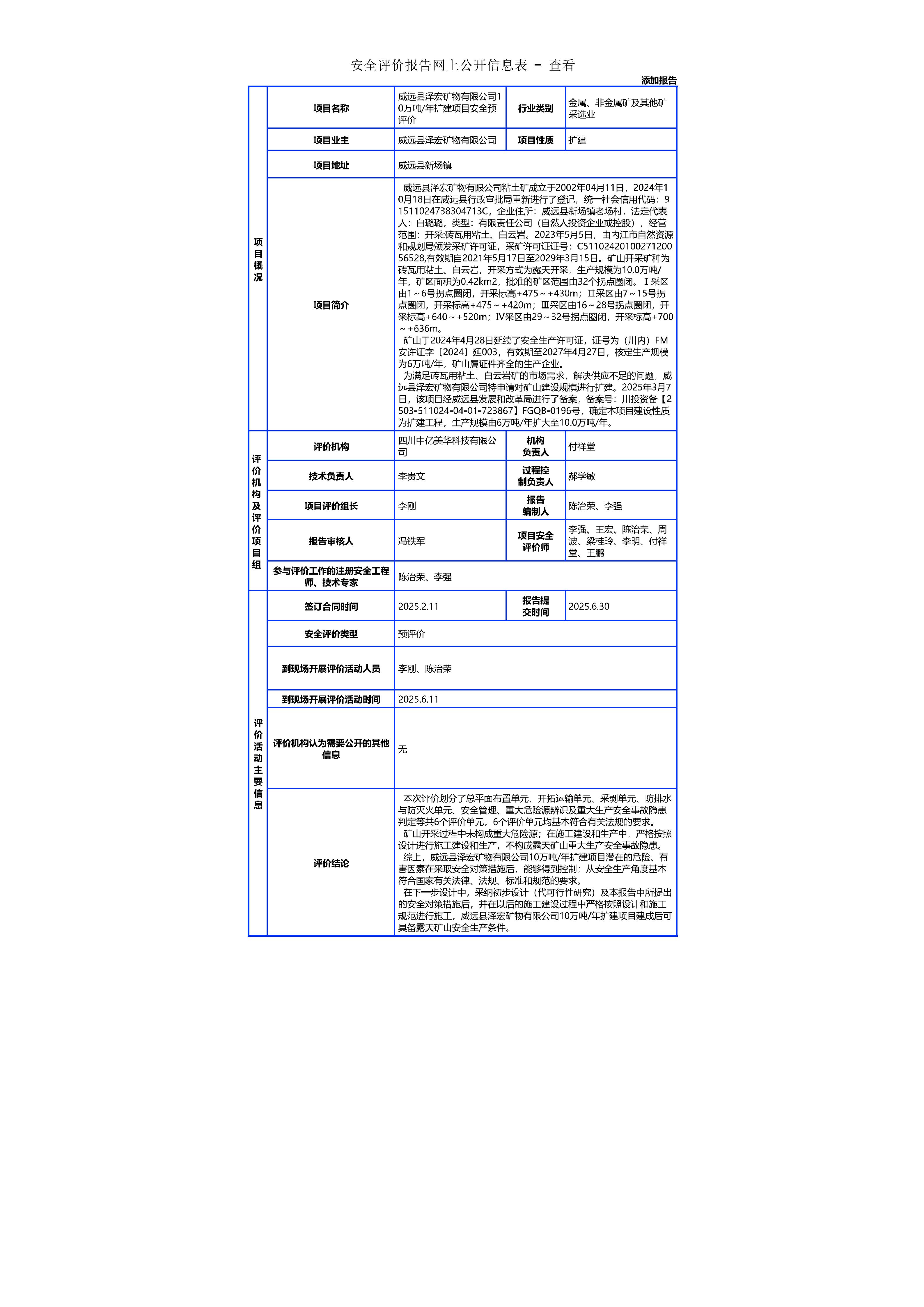威远县泽宏矿物有限公司10万吨/年扩建项目安全预评价