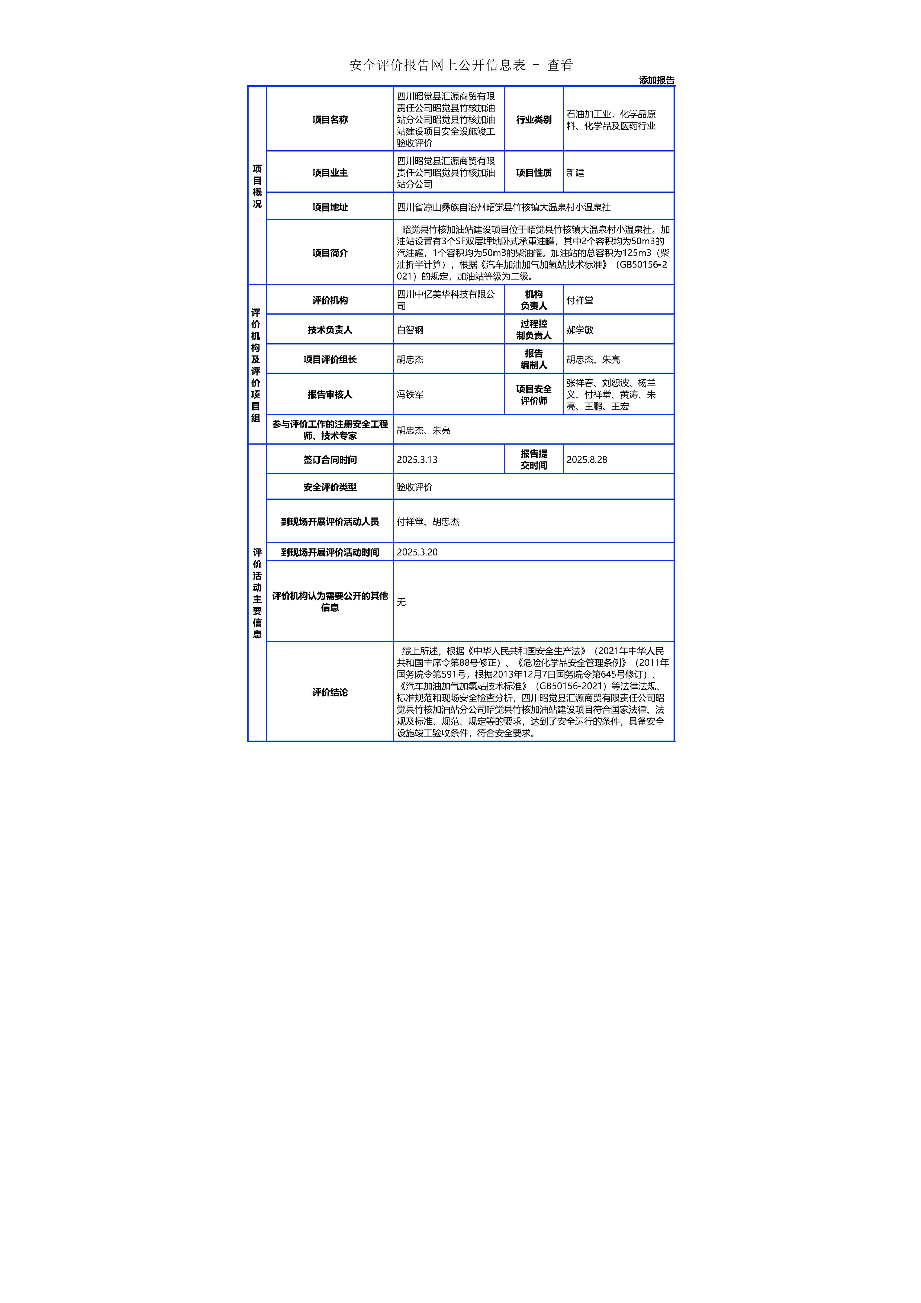 四川昭觉县汇源商贸有限责任公司昭觉县竹核加油站分公司昭觉县竹核加油站建设项目安全设施竣工验收评价