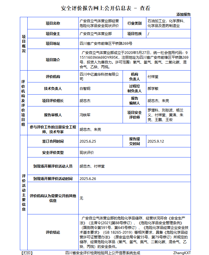 简阳华信气体有限公司经营危险化学品项目安全评价