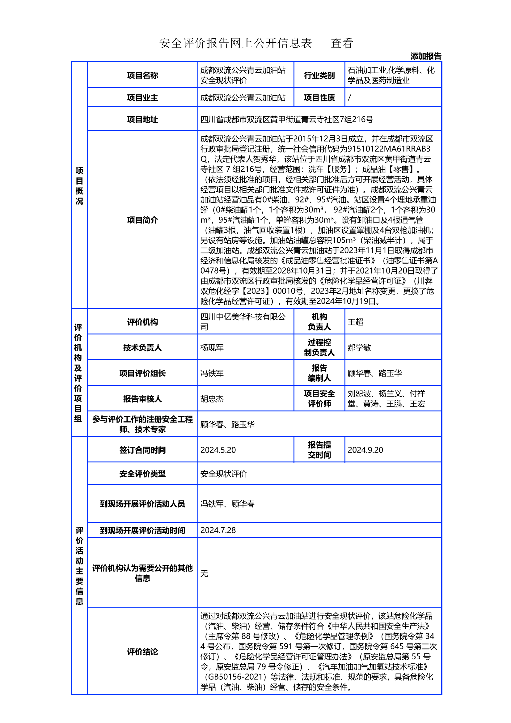 成都蜀光石化供销有限公 司蓉石加油站技术改造项 目安全设施竣工验收评价