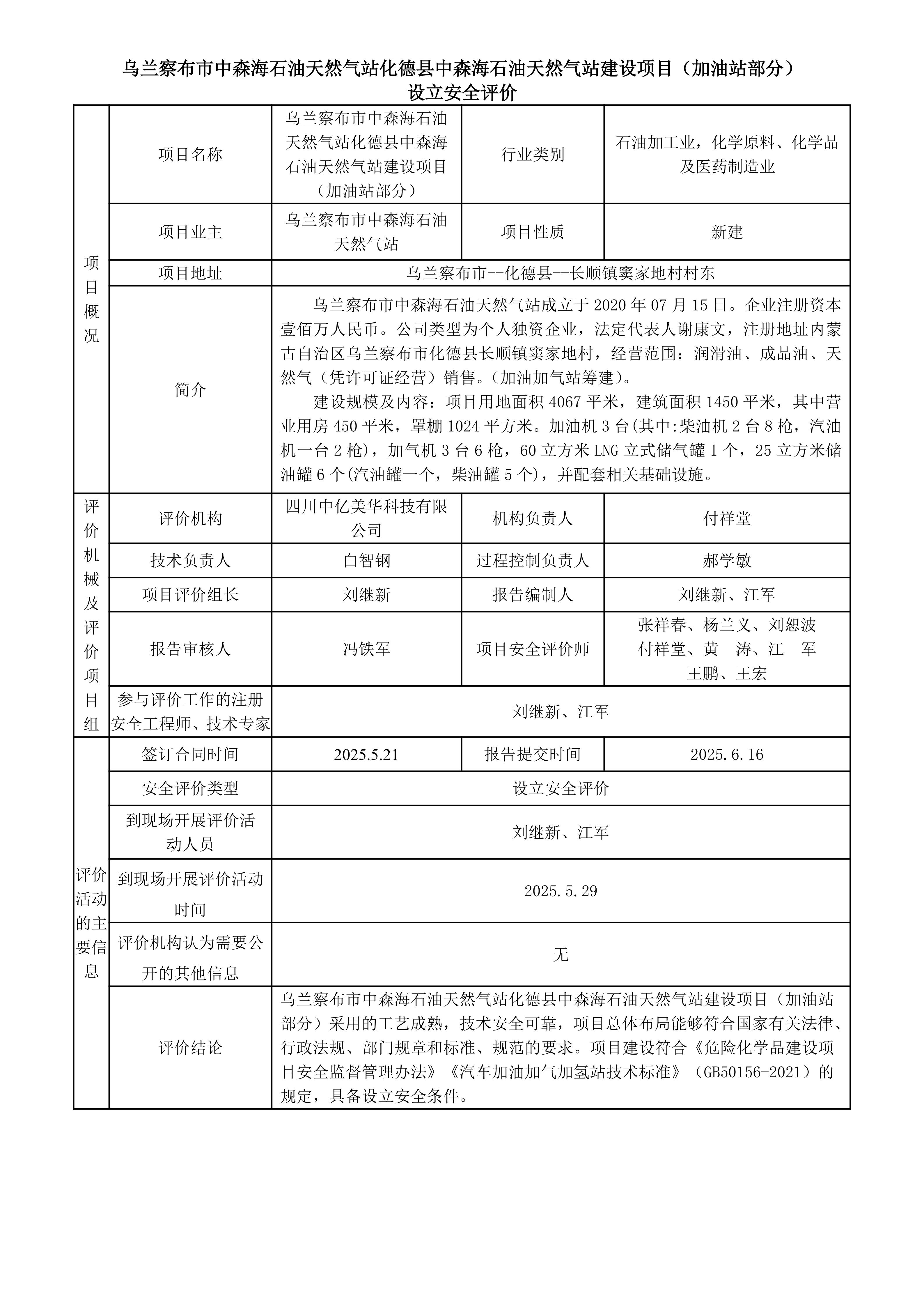 乌兰察布市中森海石油天然气站化德县中森海石油天然气站建设项目(加气站部分)